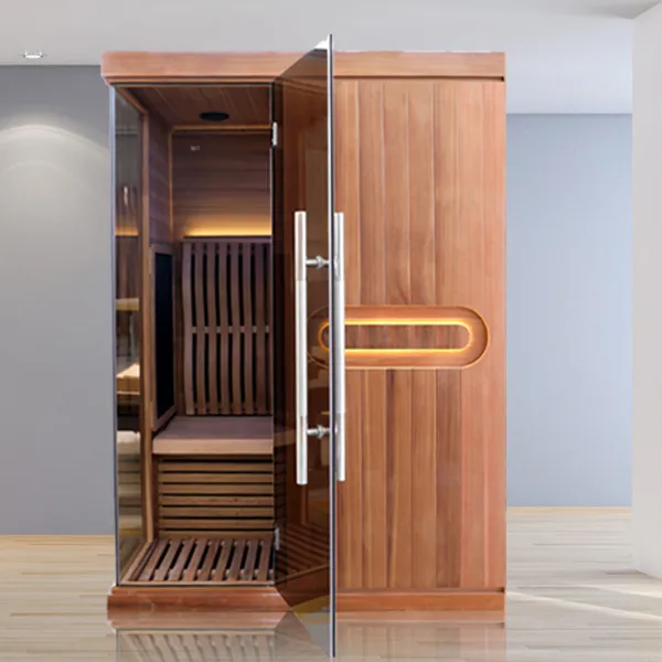 이 2인용 적외선 사우나는 현대적인 디자인과 치료 기능을 결합하여 가정 건강 관리에 이상적입니다. 내구성과 천연 향으로 가치가 높은 고품질 솔송나무 또는 캐나다산 적삼나무로 제작된 이 제품은 고급 원적외선 가열 기술을 통해 프리미엄 사우나 경험을 제공합니다.