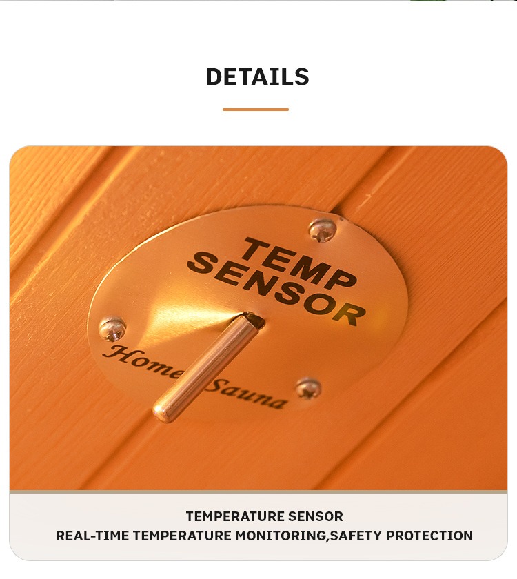 - 실시간 온도 제어 시스템: 내장된 온도 센서는 실내 온도를 정확하게 모니터링하여 사우나 안전을 보장합니다.