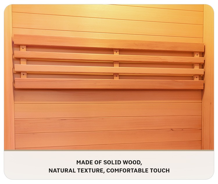 프리미엄 캐나다산 목재인 헴록(Hemlock)과 레드 시더(Red Cedar)를 선택했습니다. 목재는 단단하고 내구성이 뛰어나며, 선명한 자연 질감과 균일하고 우아한 색상을 갖고 있습니다. 각 나무 조각의 자연적 특성은 사우나에 독특한 질감을 부여하여 천연 및 고급 미적 유전자를 홈 웰니스 공간에 주입합니다. 가정용 실내 적외선 사우나.
