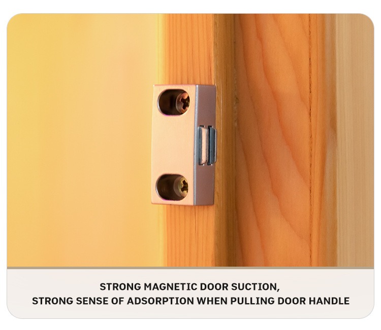 - 금속 경첩 및 자석 도어 캐치: 금속 경첩은 변형 없이 강력한 하중 지지력을 가지며, 자석 도어 캐치는 단단히 흡착되어 열과 프라이버시를 차단합니다.