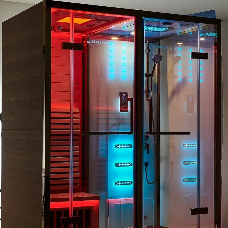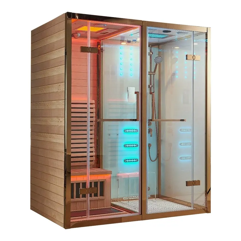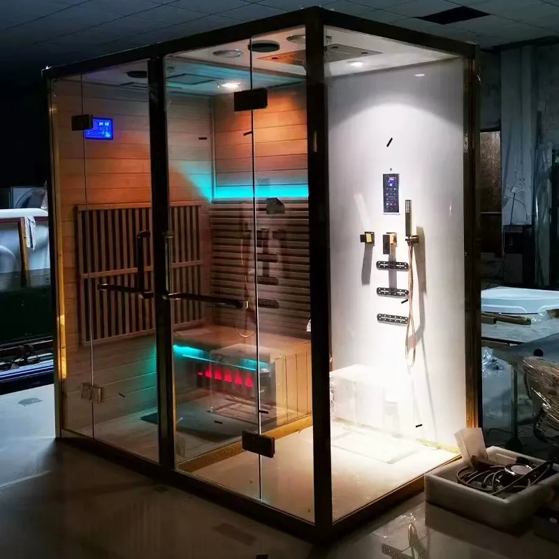 습식 스팀 샤워 기능과 결합된 적외선 탄소 크리스탈 가열 패널을 갖추고 있습니다.