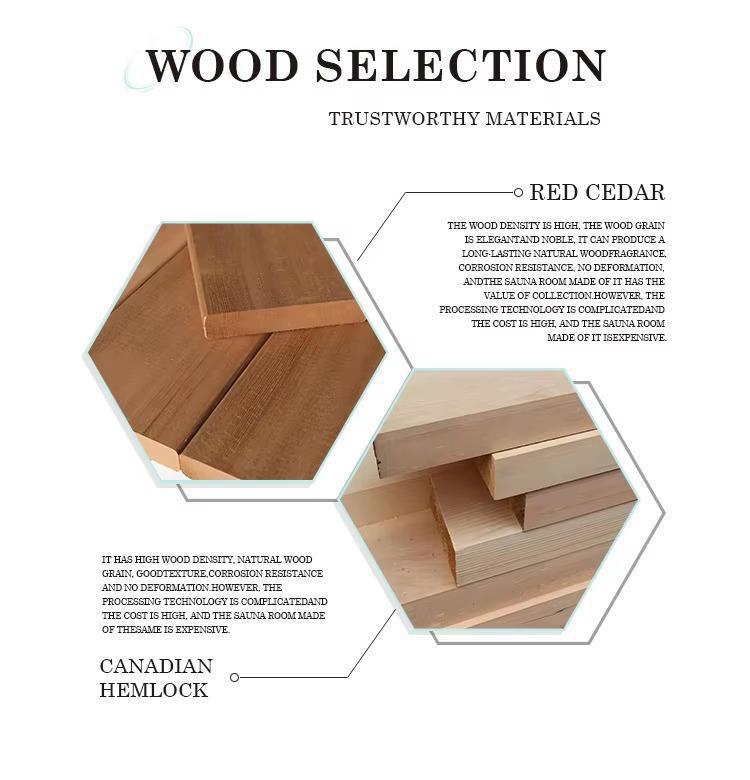 우리는 고급 단단한 목재 사우나실의 R&D 및 생산에 중점을 둔 전문 사우나실 제조 공장입니다. 맞춤형 맞춤화 및 OEM 서비스를 지원하며, 고객 요구에 따라 제품 크기, 재질, 구성 등을 조정하여 고객에게 원스톱 생산 솔루션을 제공할 수 있습니다.